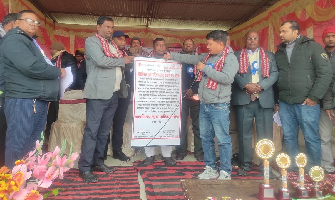 राजविराज । तिलाठी कोईलाडी गाउँपालिका वडा नम्बर- ३ लाई औपचारिक रूपमा बाल विवाह मुक्त वडा घोषणा गरिएको छ । तिलाठी कोईलाडी गाउँपालिकाको आयोजनामा तथा सेभ द चिल्ड्रेन र सेभ द सप्तरीको समन्वयमा... विस्तृतमा