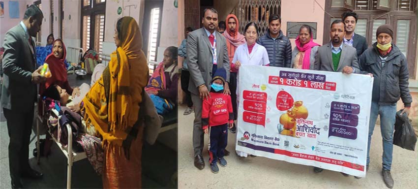 राजबिराज शाखा प्रबन्धक नन्दकिशोर गुप्ताले समाजिक दायित्व अन्तर्गत तथा स्थापना दिवसको अवसरमा अस्पतालका बिरामीहरूलाई फलफूल बितरण गरिएको बताए ।