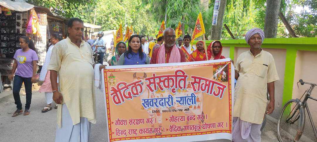वैदिक संस्कृति समाजका अध्यक्ष रामकुमार शास्त्रीको अगुवाइमा निकालिएको रयालीमा बैरागी बाबा मोतीलाल, बाबा सुबी यादब लगायत सयौ जनाको सहभागिता रहेको थियो ।