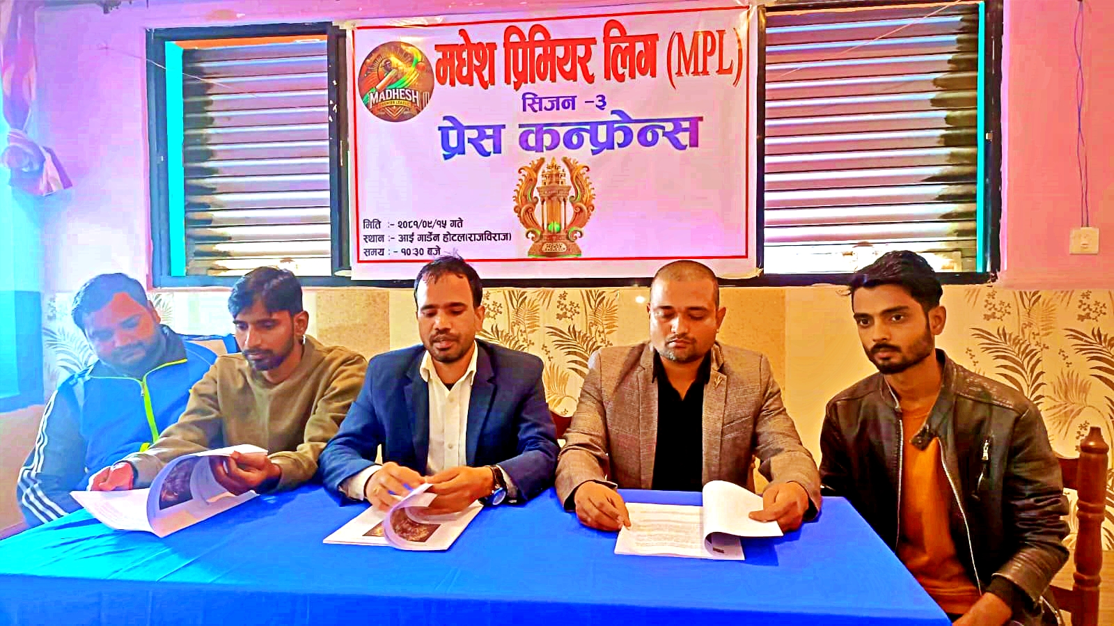 राजविराज । मधेश प्रिमियर लिग (एमपीएल) सिजन ३ क्रिकेट प्रतियोगिता आगामी चैत्र ५ गतेबाट हुने भएको छ । शनिवार राजविराजमा पत्रकार सम्मेलन गरि लिगका अध्यक्ष ई. संजिव नारायण यादवले जानकारी दिए ।