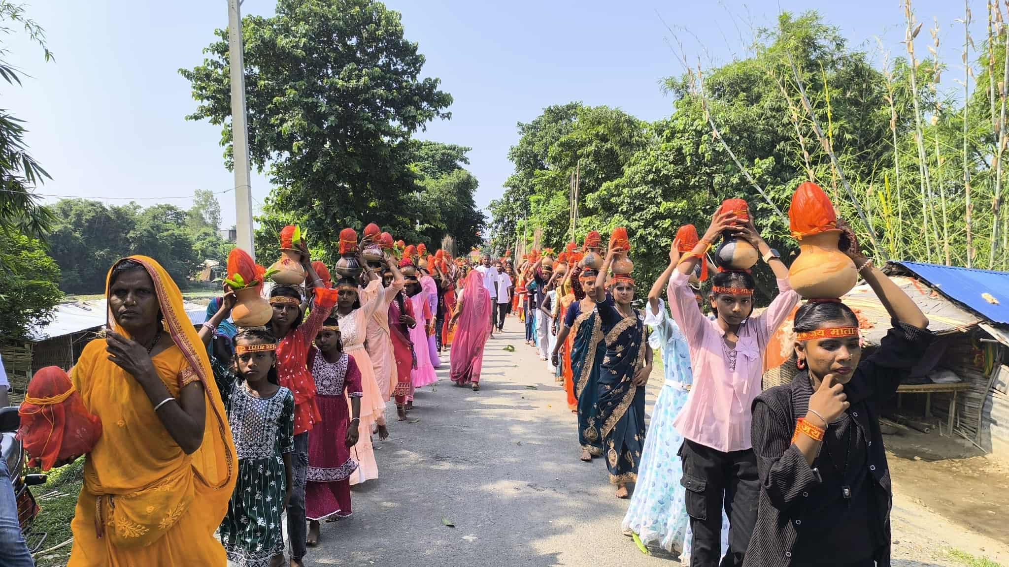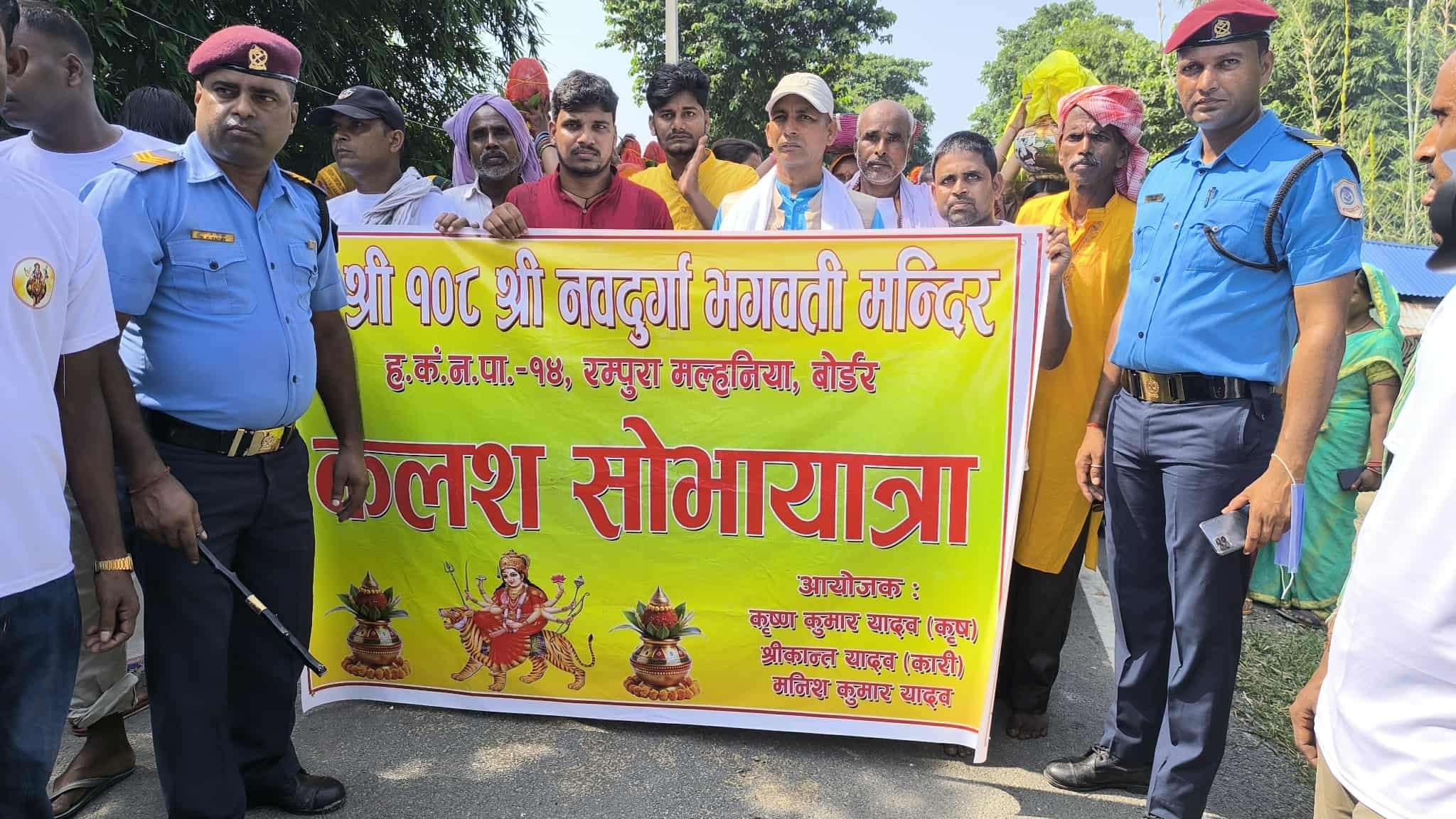 वडा अध्यक्ष कृष्णकुमार यादवको अगुवाइमा निकालिएको कलश यात्रा नगरको रम्पुरा, मल्हनियाँ हुँदै डलवाको कोशी तटबन्धमा पुगेर कलश भर्ने र पुनः दुर्गा मन्दिरमा स्थापना गर्ने परम्पराअनुरूप सम्पन्न गरिएको हो ।