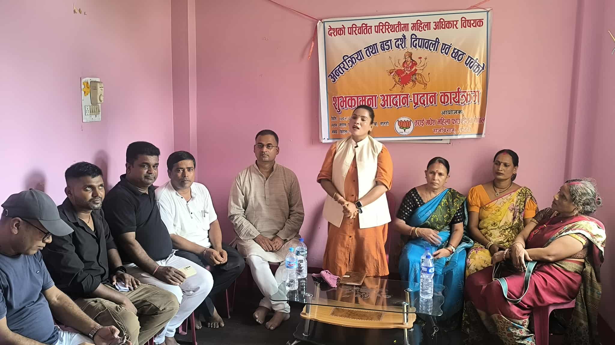 देशको परिवर्तित परिस्थितिमा महिला अधिकारबारे अन्तरक्रिया तथा बडादशैं, तिहार र छठ पर्वको अवसरमा बुधबार नेपाल पत्रकार महासंघ, सप्तरी शाखाको सभाहलमा आयोजित कार्यक्रममा शुभकामना आदानप्रदान गरिएको थियो ।