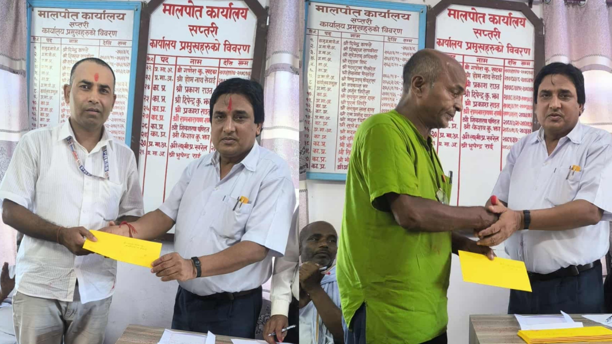 जेनजी आन्दोलनका क्रममा सप्तरीवासीको भूमिसम्बन्धी कागजात, अभिलेख र भौतिक सम्पत्ति सुरक्षित राख्न योगदान पु-याएको कदरस्वरूप लेखापढी कानुन व्यवसायी इकाई अध्यक्ष श्रीलाल यादवलाई मालपोत अधिकृत अजय झाले सम्मान गरे ।