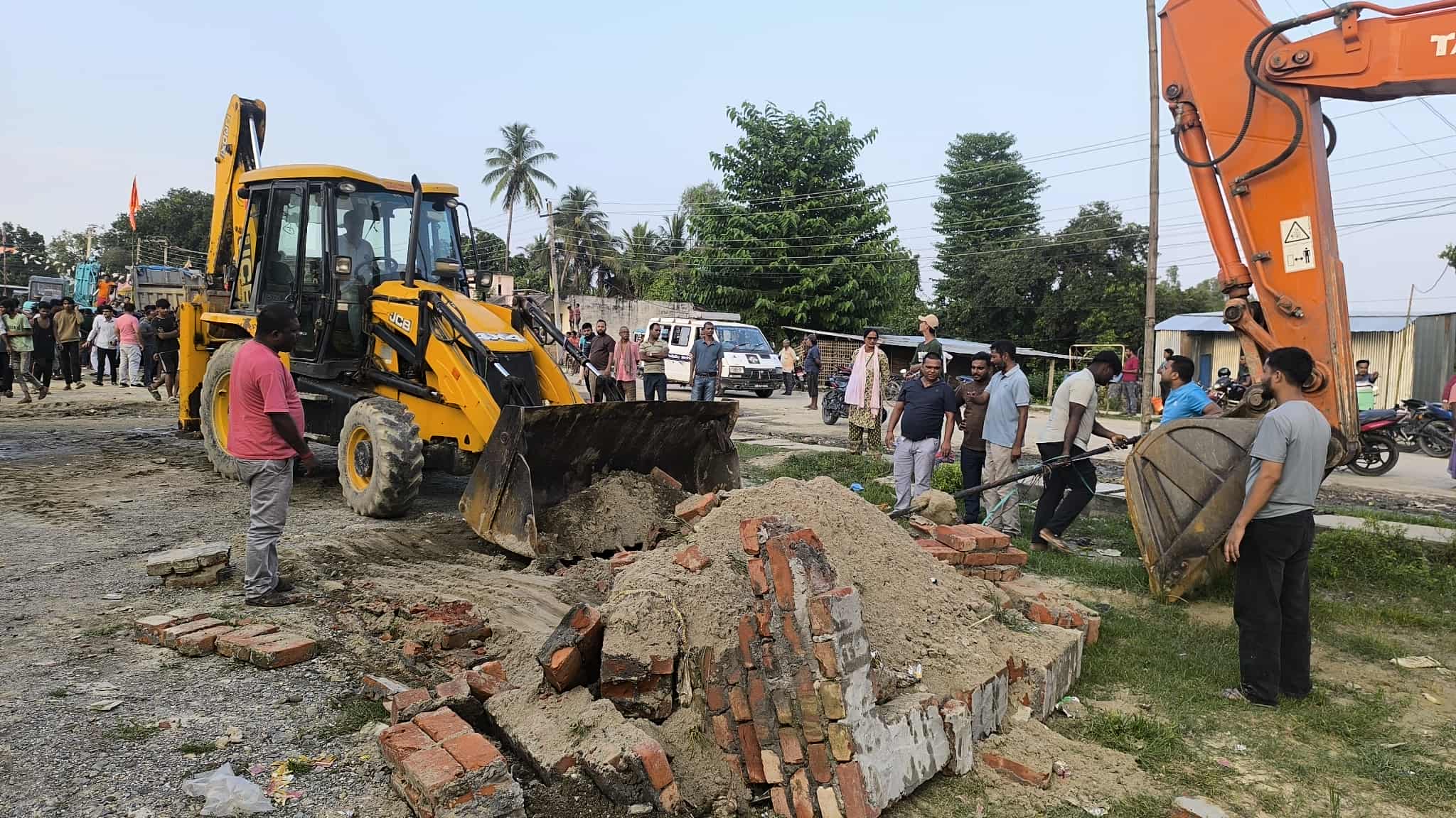 नगर प्रमुख ईसरत परविन र दुबै समुदायका प्रतिनिधिहरूको उपस्थितिमा अनधिकृत रूपमा निर्माण गरिएको संरचना सार्वजनिक जग्गाबाट हटाइएको जिल्ला प्रशासन कार्यालयले जनाएको छ ।