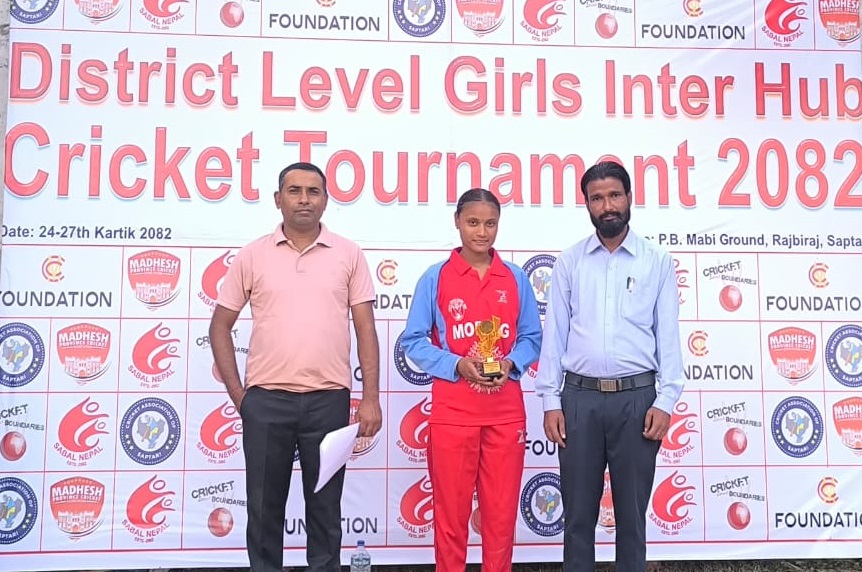 उक्त अवसरमा दुवै खेलकी ‘प्लेयर अफ द म्याच’ खेलाडीहरूलाई राजविराज नगरपालिका–५ का वडा सदस्य सन्तोष मण्डल र सप्तरी क्रिकेट सङ्घका सदस्य मनोज साहले पुरस्कार तथा ट्रफी प्रदान गरेका थिए ।