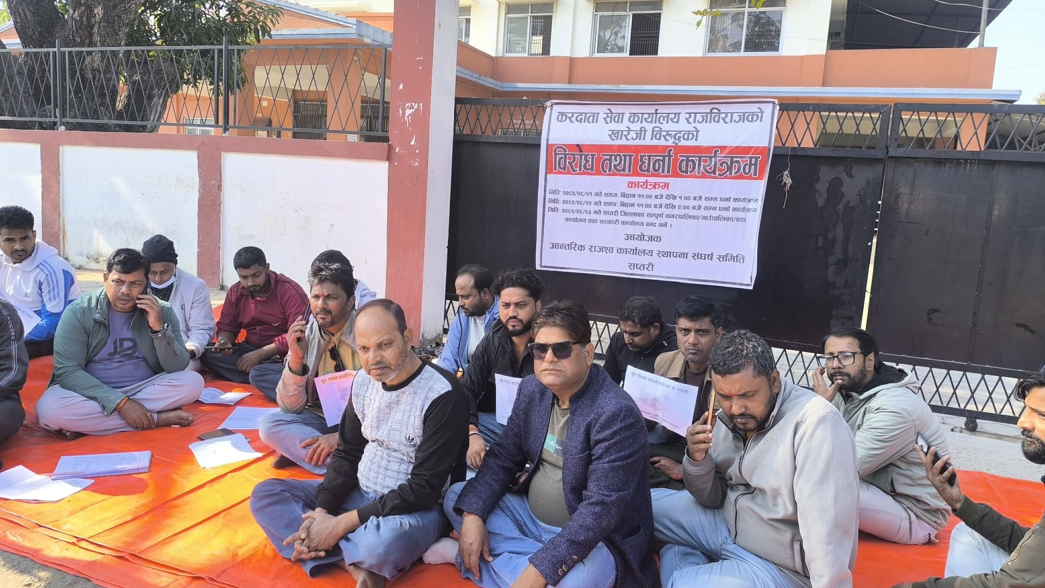 राजविराज । आन्तरिक राजस्व कार्यालय स्थापनाको माग गर्दै सोमबार जिल्ला प्रशासन कार्यालय सप्तरी अगाडि धर्ना दिइिएको छ । आन्तरिक राजस्व कार्यालय स्थापना संघर्ष समितिको अगुवाइमा दिइएको धर्ना दुई घण्टा सञ्चालन भएको थियो ।