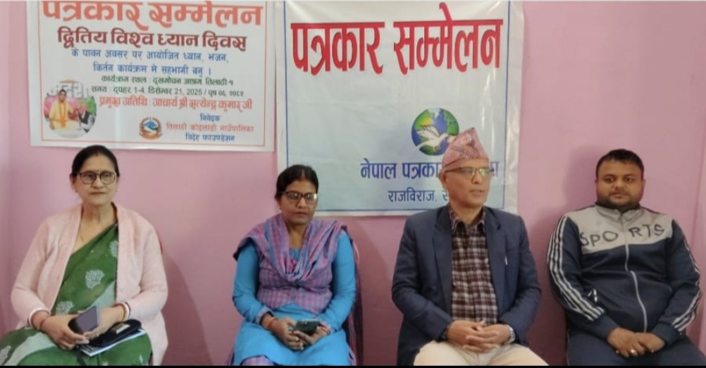 पत्रकार सम्मेलनमा बोल्दै विदेह फाउण्डेशनका संस्थापक तथा राष्ट्रिय मानव अधिकार आयोगका सदस्य मिहिर ठाकुरले पुस ६ गते तिलाठीस्थित दुखमोचन आश्रममा भव्य कार्यक्रम आयोजना गरी विश्व ध्यान दिवस मनाइने बताए ।
