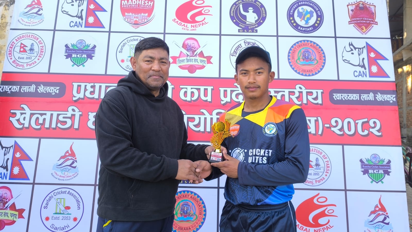 खेलको ‘प्लेयर अफ दि म्याच’ घोषित अभिषेक कार्कीलाई अन्तर्राष्ट्रिय खेलाडी दीपेन्द्र चौधरीले ट्रफी प्रदान गरेका थिए ।